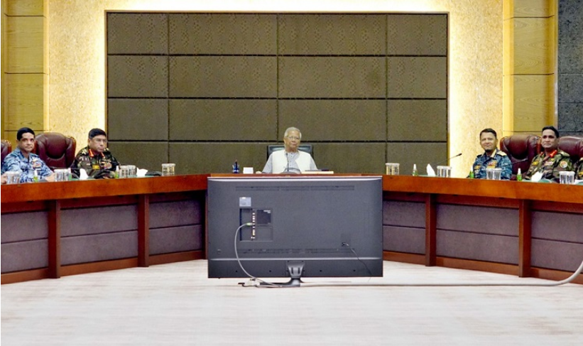 সভায় প্রধান উপদেষ্টা দেশের বিভিন্ন প্রয়োজনে সশস্ত্র বাহিনীর গৌরবোজ্জ্বল ও দায়িত্বশীল ভূমিকার কথা তুলে ধরেন। দীর্ঘদিন ধরে ধৈর্য ও পেশাদারিত্বের সঙ্গে আইনশৃঙ্খলা রক্ষায় ভূমিকা রাখার জন্য তিনি সশস্ত্র বাহিনীর সদস্যদের প্রতি আন্তরিক ধন্যবাদ ও কৃতজ্ঞতা প্রকাশ করেন।