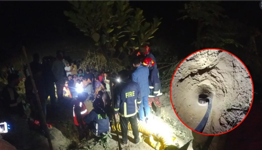 স্থানীয় সূত্রে জানা গেছে, শিশুটি তার বাড়ির পাশে থাকা গর্তে পড়ে গেলে খবর পেয়ে স্থানীয়রা উদ্ধার অভিযান শুরু করেন। সামাজিক যোগাযোগমাধ্যমে ছড়িয়ে পড়া ভিডিওতে দেখা গেছে, স্থানীয় বাসিন্দারা বাঁশের লাঠি ব্যবহার করে শিশুটিকে উদ্ধার করার চেষ্টা করছেন। ভিডিওতে এক যুবককে শিশুটিকে বাঁশ ধরে রাখতে বলা হয়।