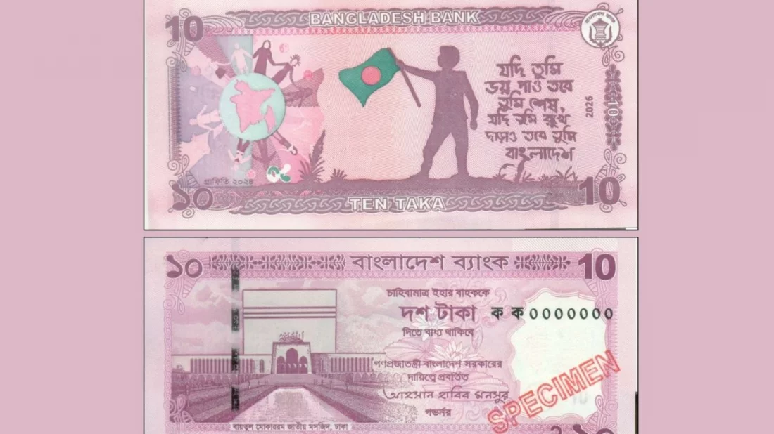 এর ধারাবাহিকতায় গভর্নর ড. আহসান হাবিব মনসুরের স্বাক্ষরযুক্ত নতুন ডিজাইন ও সিরিজের ১০ টাকা মূল্যমানের ব্যাংক নোট আজ ৩ ফেব্রুয়ারি থেকে প্রথমবারের মতো বাজারে প্রচলনে দেওয়া হচ্ছে। প্রাথমিকভাবে নোটটি বাংলাদেশ ব্যাংকের মতিঝিল অফিস থেকে ইস্যু করা হবে এবং পরবর্তীতে কেন্দ্রীয় ব্যাংকের অন্যান্য শাখা অফিস থেকেও সরবরাহ করা হবে।